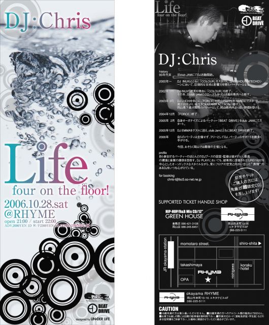 今回で最後のオーガナイズ、RHYMEでは初めてとなる一人DJです。
