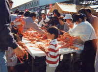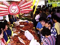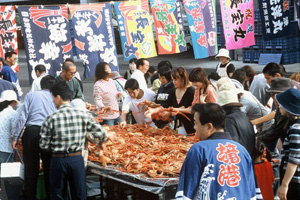 境港の名物イベント 境港水産まつり みんな待ってる「水産まつり」。年に一度の魚のお祭りです!毎年、新鮮で超安値の鮮魚・活魚の即売。店先に、タイやハマチ・イカ・アジ・サバ・カニなどとびきり新鮮な海の幸がズラリと並び、境港大漁太鼓・鬼太郎音頭・境さんこ節・荒神太鼓、セリ即売体験・大抽選会などのイベントなどが行われます。 そして、マグロの解体ショー毎年大人気の、ゆでガニ・いわしのつみれ汁 などの無料試食コーナーもあります ■ 水産まつりってなあに? ■ 境港水産まつりは、日本有数の漁港に成長した境港を代表