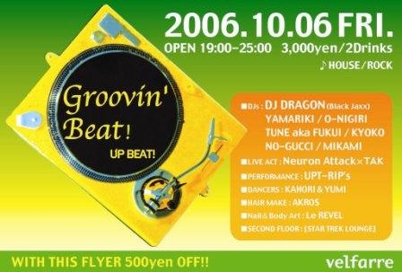 SOUNDSCAPE LAB @orbit 『 ミニマリスティク セクシュアリティー ダヴィー イリーガル ジャミング ネイチャー スペイシー 』 2006/10/06(fri) OPEN: 22:00 DOOR: 1000yen/1drink 狂わしく狂わしい季節の訪れに身を焦がし、『泥臭い』との形容詞を冠に、SOUNDSCAPELAB DJ陣が疾風怒涛の勢いで秋の夜長を彩るこのPARTY。ジャンルの複合と解体は留まることを知りませんが、SOUNDSCAPELABが放つ一筋の光明を感じ取って頂けたら、これ幸いでございます。 DJ: ○ MOTOHIRO KIMURA ( DRYROOTS ) 自身がオーガナイズしたイベ