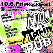 10年戦士がお届けする! 新食感バレアリックノータリンすたいるパーティー! ●No!Tarin Pub● 10/6(Fri)@渋谷Rockwest(http://rockwest.jp/) (東急ハンズ横,ハーレーダビットソンのあるビルの7階です) open:23:00〜 door:\2500 w/f:\2000 Guest DJ YOGURT(UPSETS/SLOWMOTION/STYLUS) http://mixi.jp/view_community.pl?id=211549 DJ's GEGE KITELETS HIDE(KICKS) http://www.kicksrecords.com/ http://mixi.jp/view_community.pl?id=386112 石田としき VJ 矢吹和彦(-kikyu-) http://mixi.jp/view_co