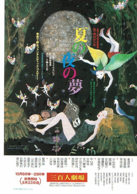 さよなら三百人劇場シリーズ最終作品 劇団昴公演 『夏の夜の夢』 作 ウィリアム・シェイクスピア 翻訳 福田恆存 演出・美術 三輪えり花 <主な出演> 平田広明 金尾哲夫 松谷彼哉 岩田翼 中西陽介 湯屋敦子 米倉紀之子 牛山茂 豪華キャストでお送りする音楽いっぱいのファンタジー 三輪えり花の本領発揮! 2006年10月6日〜29日 三百人劇場にて 料金:一般4900円 ご予約:劇団昴 03-3944-7071 三輪えり花のHPを見てと、仰っていただければ、割引になります! 前売り開