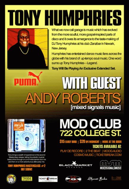 Legendary Tony Humphries for his Return to Toronto.On the same level as