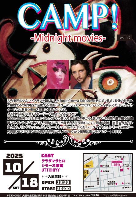 2025 10 18 sat CAMP midnight movies vol.112 @ ÂçºåƲ»³ dista ¥Æ¥é¥À¥Þ¥µ¥Ò¥í¡¡¥·¥â¡¼¥Ì¿¼Àã¡¡Uttchiyy Open 19:30¡¡Start 20:00 \ Free
