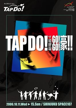 TAP DO!と申します。 公演の案内をさせてください。 『TAP DO!劇場版4 GO!GO!豪!!』 10月11日(水)〜15日(日) 新宿SPACE107にて 【キャスト】 ポケ・畠山眞葵・今野直美・吉田ひかる・坂口勝 渡邊さやか(ピアノ)・宮島朋之(ベース) 【TAP DO!とは】 芸人・タップダンサー・ミュージカル俳優・ ミュージシャンで構成されたユニット。 笑いとタップと生演奏をメインにジャグリング・コント・パントマイム 歌・バトントワリング・チアなどバラエティに富んだ タップ・エンター