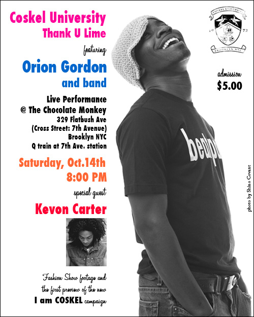 NY発、カリビアン・カルチャーをテーマに展開するファッションブランドCOSKEL UNIVERISITYが贈る、トリニダード・トバゴ出身の大型新人シンガー、Orion Gordon(オリオン・ゴードン)のデビューイベントです。ジャンルはソカ/カリプソ。ゲストには、人気シンガーのKevon Carter(ケヴォン・カーター)を迎えます。