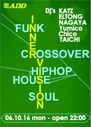 今月も第2回Inner Vision開催です! ●[2006/10/16] 「Inner Vision」 DJ’s KATZ ELTONG NAGAYA Chico Yumico feat.DJ Taichi それぞれルーツは違えど、ある種共通の黒いグルーヴに傾倒している男女が織りなす、good party!!! メンバー各自の視点から捕らえた<VISION=MUSIC>を、その日のあなたの MIDNIGHT THEMEに!!! JAZZ FUNK SOUL HIPHOP HOSE CROSSOVER......お好きなものを好きなだけご堪能あれ!!!!!! @clubADD (sendai) open:22:00 2000yen(2drink) 今月は急遽feat.DJにTaichiを迎え一夜に6DJ'sと