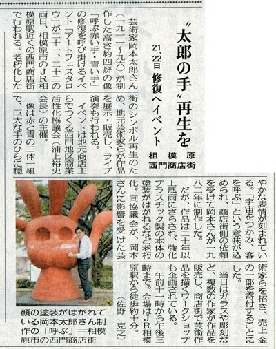 本日、放映されていた 波乱万丈でジミーちゃん出演 最近の作品など紹介されてました そこで、話題に上がった 芸術家として あの岡本太郎さんのことが・・・ 正直、ジミーちゃんが太郎さんから受け継いだマインドがあったのは知りませんでした 岡本太郎さんの作品について今度イベントやりますので皆様よかったら是非 次回開催時には、ジミーちゃんの作品もなんかしらの形でコラボできればと考えてる次第です よろしくおねがいします アートフェスタロウとは、神奈川県相模原市にある西門商店街にある岡本太郎作品の修復と