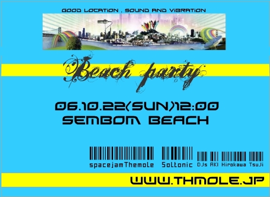 今年最後のビーチパーティーが決まりました。 場所はもちろん千本浜です!! 昼の12:00スタート 若手のバンド Soltonic 沼津のDJも多数出演します。 一緒にバーベキューでもしながら盛り上がりましょう!