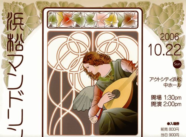 ■会場:アクトシティ中ホール ■開演14:00 <第1部:オリジナル> レナータ (ラビトラーノ) 間奏曲 (S.ファルボ) マンドリンの群れ (ブラッコ) <第2部:ポピュラーを中心に> オペラ座の怪人 ジェラシー 「世界ウルルン滞在記」のテーマ "風たちとの出逢い" 「星空のファンタジー」メドレー 歌劇「トゥーランドット」より"誰も寝てはならぬ" タイム・トゥ・セイ・グッバイ <第3部:クラッシック> 「皇帝ティトゥスの慈悲」序曲 (モーツァルト/松本譲) ヴァイオリン協奏曲第2番ホ長調BWV1042 (J.S.バッハ)vn山