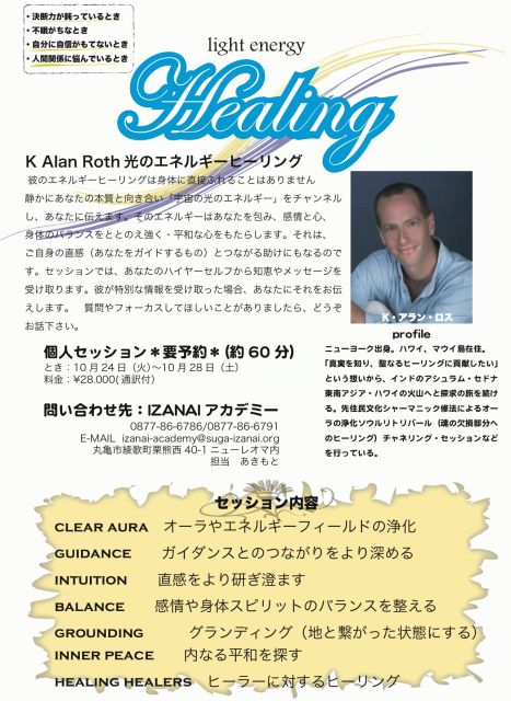 ハワイ・マウイ島からヒーラーの方をお招きします 本当にお勧めのヒーラーです♪ 詳細は↓ http://mixi.jp/view_event.pl?id=11426568&comm_id=421598