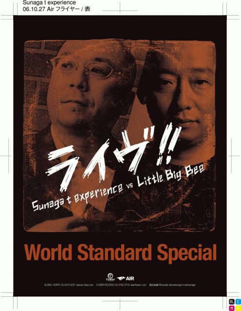 FLOWER RECORDSきっての大御所バンド、Sunaga t experienceと Little Big Beeが、ついに夢の競演!!欧州ハードバップやモードの エッセンスを抽出し、オーソドックスさやエモーションを解体させ更新、新たなフロアジャズを再構築するスタイルで突き進む年内最後のラ イブ演奏Sunaga t experienceに対し、Little Big Bee は オリジナル・メンバーに加え、トランペット、パーカッションの西岡ヒデローにより繰り広げられる「クラブで行うためのライヴ」で応戦!!見逃し厳禁!!