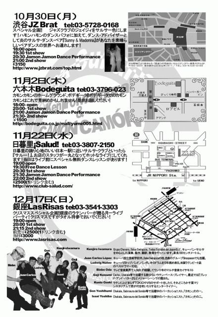 『岩村健二郎&カモンカモン』は、Salsa Swingoza、Grupo Chévere等で活動するヴォーカリスト私岩村健二郎が、完全ダンス志向のキューバン・サルサ・バンドとして2006年春に結成しました。キューバのトップバンドBamboleoに10年間在籍したグルーヴ・マスター、ルドウィグ・ヌネェスをドラムに、Salsa