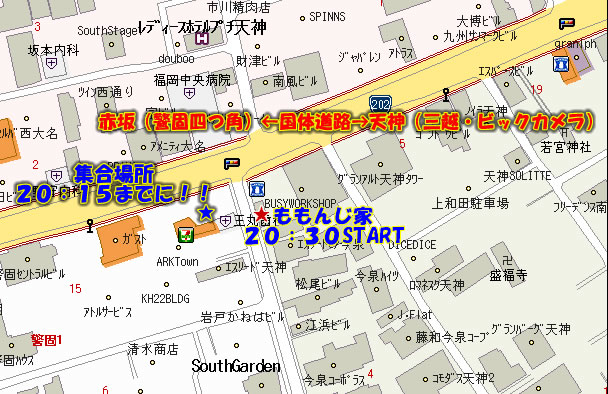 ●会場 フリースタイル居酒屋 ゆめ八 鰻谷店 http://www.hotpepper.jp/A_20100/strJ000013447.html ・心斎橋筋のソフトバンクが目印。鰻谷通りを入ってampmの隣のビル3F ・06-6253-8277 ●開始時間 20:00〜22:00 ●集合場所、時間 心斎橋ロフト前に19:50 (20:00になり次第、出発します) ●予算 3000〜4000(食べ放題、飲み放題付) ●人数 60人 早めの参加表明を宜しくお願いします。 ☆場所が分かる方は現地集合で宜しくお願いします ☆緊急連絡はスナまでお願いします eleven1974@ezweb.ne.jp 090-6248-9967