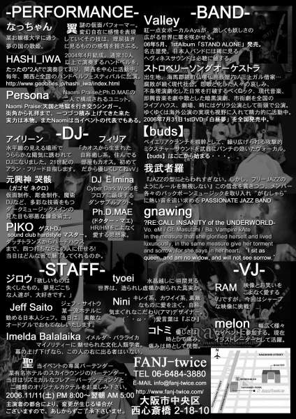 ※上記フライヤーのプリントアウト又は携帯電話の画面メモを提示された方、当日入場料金より\500 OFF !!で入場できます。