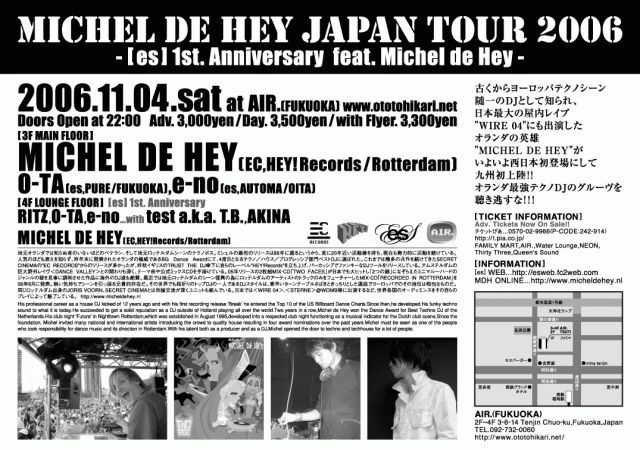 ついにあのヨーロッパを代表する天才DJ"MICHEL DE HEY"が九州、いや西日本初登場!!!!