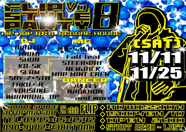 今月のFLIP STYLE PARTY 音楽のジャンルは、HIPHOP・REGGAE・House ...and more のALLジャンルのイベント!!