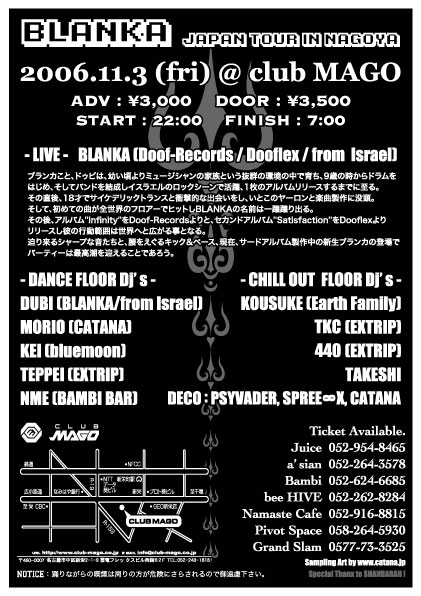 久しぶりのMAGOでBLANKAをゲストに迎えてのPSYCHEDELIC TRANCE DISCOです。Please,Come'on Dance Tribe!!!