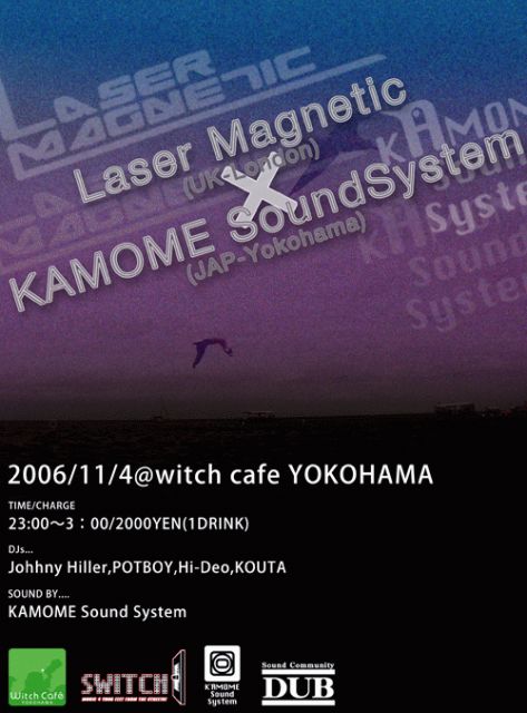 11月の4日(土曜日)に関内のメディアセンター1Fに あります、WITCH CAFEにて新しいCLUB PARTYが 始まります♪ 第一回目はUKのUNDERGROUND ELECTRO DISCOのDJ、 JOHNNY HILLERを迎えてお送り致します♪ ★☆★★☆★★☆★★☆★★☆★★☆★★☆★★☆★ "KAMAOME Sound System × Laser Magnetic" time:23:00〜3:00 place:witch cafe YOKOHAMA DJs: Johhny Hiller POTBOY Hi-Deo KOUTA Sound System : KAMOME Sound System charge:2000YEN(1DRINK) ★☆★★☆★★☆★★☆★★☆★★☆★★☆