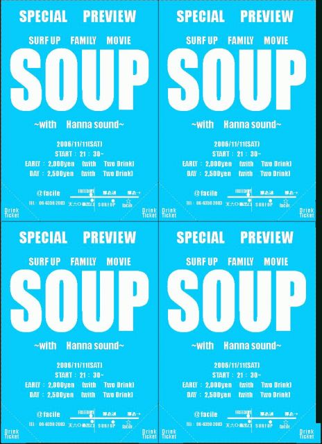サーフアップのみんなも出てるスノーボードDVDの 試写会やります!! 11月11日(sat) 9時半〜 前売:2000円(2ドリンク) 当日:2500円 場所:サーフアップの隣の隣の隣のカフェで ”facile”ファシルって所です! イベントやります+。:.゚ヽ(*´∀`)ノ゚.:。+ 前売りチケットはサーフアップで売ってます! みんでシーズン前に盛り上がりましょ〜! 宜しくおねがします! みなさんが楽しめる企画を考えておりマス! またSOUP情報はトピックでupしていきますので よろしくお願いします☺