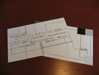 いつも演奏会の宣伝をさせて頂き、誠に有難うございます。 本日は、我々、慶應ピアノ・ソサィエティー(KPS)が加盟する東京六大学ピアノ連盟の現役生&OBによるピアノフェスティバル2006の宣伝に参りました。 東京六大学ピアノ連盟 ピアノフェスティバル2006 http://pianofes.exblog.jp/ 日時:2006年11月12日(日) 開場12:30 開演13:00 チケット代:500円 会場:川口総合文化センター 川口LILIA 音楽ホール@JR京浜東北線川口駅(東京駅、新宿駅から20分程です) [第1部] 1.スクリャービン:ピアノ・ソナタ第4番 Op.30 2.ショパ