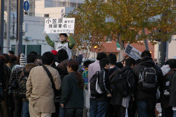 このイベントは「小笠原選手の残留を希望し願う会」http://livefighters.web.fc2.com/ (←外部サイトに飛びます) 内の活動企画です。 画像は、主に昨日、今日(11月18日、19日)で集まった署名用紙の束です。これだけで20,591人分5.9kg分になります。さきほど早速、ゆうパックでお送りしました。明日午前中には球団事務所に到着の予定です。 その後、小笠原選手に手渡していただくお約束を球団サイドからいただいております。 先週第一弾、4,825人分を送付済みです。そしてまだ処理できていない、ここ2〜3日で集まったサイト署名、直筆署名
