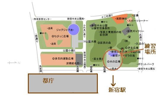 初参加さんとまだ1〜2回しか参加したこと無い人だけのイベントを開きます! レギュラーの人ばっかりだと参加しにくくて・・・ 夜の練習にはなかなか行けなくて・・・ と思っていたあなた! ぜひこの機会にご参加ください。 ちなみに僕は一応主催なので参加します。 レギュラー1名〜2名参加予定。 練習場所:新宿中央公園 集合場所:JR新宿駅西口改札前(画像1枚目) 集合時間:午前10時 集合時間に間に合わない場合は直接新宿中央公園にいらしてください(画像2枚目) 基本的には参加時間は自由です。 だいたい10時から昼食