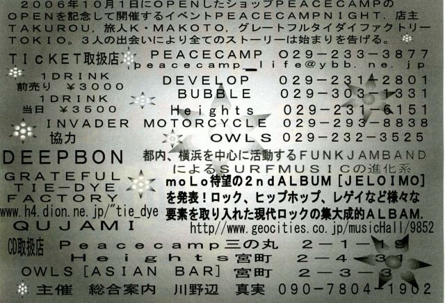 代理アップですが、この度 茨城県水戸市にpeace campというヘンプショップが出来ました、そこのオープニングイベントを開催いたしますのでよろしくお願いします。