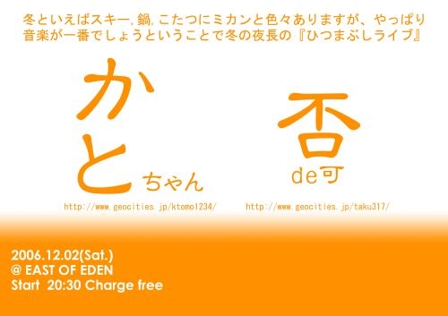 寒い日こそヲトコ達の熱いサウンドであなたを暖めます。(w笑
