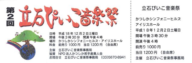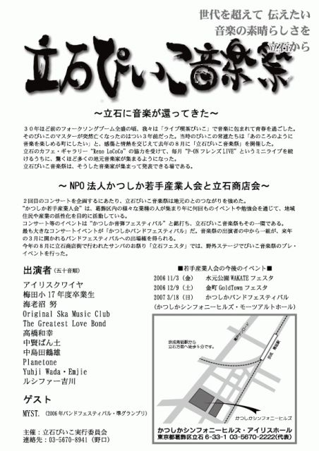 音楽部メンバで編成されたバンド「original ska music club」が、なぜか「ぴいこ音楽祭」に出演します。来れる方がいらっしゃいましたら、人数、及び、来れる旨を記載