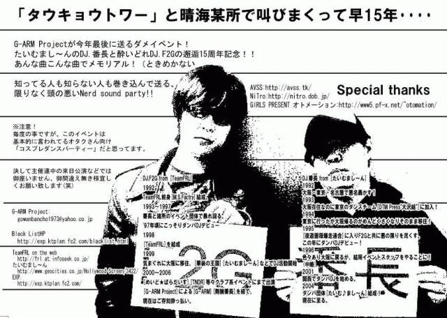 たいむまし〜んのDJ.番長と酔いどれDJ.F2Gの邂逅15周年記念!!