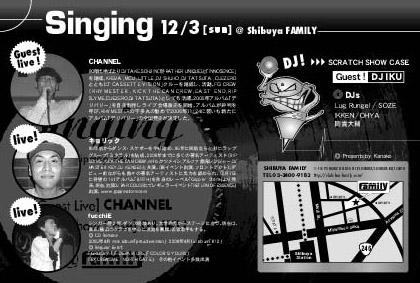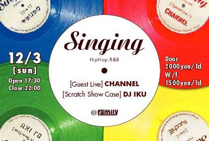 HIP-HOP、R&Bのライブイベント開催します。 LIVE CHANNEL 、キョリック、fucchiE SCRATCH SHOW CASE DJ IKU DJ LUG Rungel / SOZE / IKKEN / OHYA / 岡貴大輔 夕方から夜までのLIVEイベントです☆