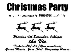 ダンスソサエティ主催のクリスマスパーティです♥今年はパブリシティをやってるので、初めて作ったポスターが嬉しくて、ここでも宣伝する事にしました^^ ダンスやってる子はもちろん、やってない子もみんなでたくさん踊ろう♪チケットは、ダンスソサエティメンバーはL2、そうじゃない人はL3です☆ショットつき。夜の8時半オープンです。みんなできてください!