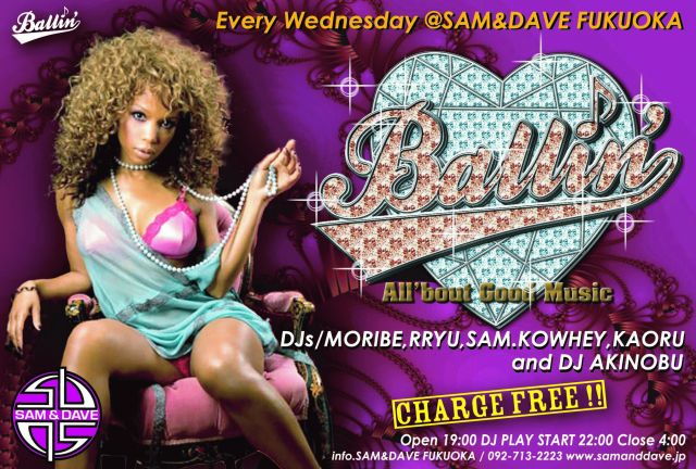ーBallin'ー@SAM & DAVE FUKUOKA ーーALL' BOUT GOOD MUSICーー ーーSTART22:00〜CLOSE4:00ーー ーーーー ?CHARGE FREEE ーーーー DJs MORIBE RRYU SAM KOWHEY KAORU AKINOBU 毎週水曜日HIP HOP,R&Bイベント開催してます。 CHARGE FREEですので皆さん是非遊びに来てください。
