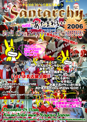 あたまわるいみなさま ごきげんよう 第一回東京オフは あたまわるいみなさんのおかげで 大成功におわりました〜。わーい。 そこでジャジャジャン! 第二弾のお知らせです。 12月24日、クリスマスイブに やっちゃいます!名古屋オフ! しかも今回はXmasということで、 サンタの格好をして練り歩いちゃう 『サンターキー』との合同イベントになります。 サンターキーとは → http://mixi.jp/view_community.pl?id=50071 さらにさらにびっくら企画。 遊べる本屋ヴィレッジヴァンガードの本拠地である名古屋での初オフ。 今回