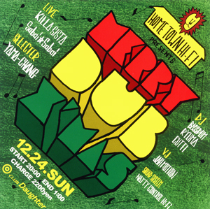 HOME TOWN HI-FI PRESENTS MERRY DUB X`MAS 12/24(SUN) START/20:00 END/1:00 CHARGE 2200YEN @CLUB Daughter 名古屋市中区栄4-3-15丸美観光ビルB1F TEL 052-264-3134 www.clubdaughter.com LIVE KILLA SISTA http://mixi.jp/view_community.pl?id=88360 http://www.killasista.com/ GUEST SELECTER YAMA-CHANG DJ CUTTI (shanti) BASSDOM (illcom+) RYUMA (illcom+) VJ JAH MOTION SOUND SYSTEM NATTY CONTROL Hi-Fi
