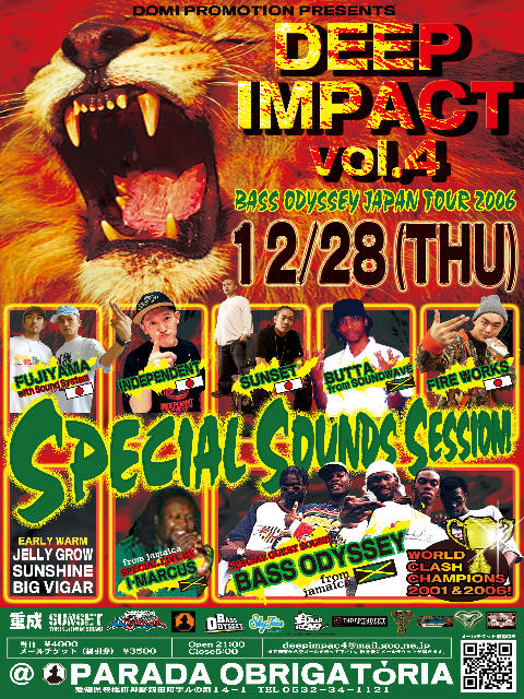 年末12月28日(木)豊橋パラダにてDEEP IMPACT Vol.4を開催。今回はスペシャルサウンドセッションということで間違いなく躍らせてくれる面子が豊橋に集結。そしてジャマイカからワールドクラッシュチャンピオン”ベースオデッセイ”が参加!これは見逃せない!是非ご来場下さい。