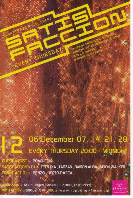新レーベル旗揚げ記念&DE DE MOUSEレコ発&大忘年会!!!!!!!!!! ExT Recordings presents ELECTRO DYNAMIC 2006.12.28 (木) OPEN/START PM9:00 @CLUB ROOTS 杉並区高円寺北3-22-3 群星館B1F TEL 03-3330-0447 http://www.muribushi.jp/index.html CHARGE: 2000円+ORDER LIVE: DE DE MOUSE ELEKTRO HUMANGEL EXPLOSION CHERRYBOY FUNCTION 荒木健太 DJ: 永田一直 露骨キット やけのはら 真保★タイディスコ TAKUYA K.E.I. 村木幸星 大豆 LIGHT EFFECT: Veem (ポテ恋DISCO)