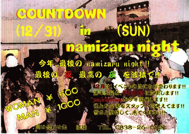 12月の、波猿 night が日にちを変更して!! カウントダウンを開催します!! 色んな企画を考えています。 最高の夜を、波猿で!!