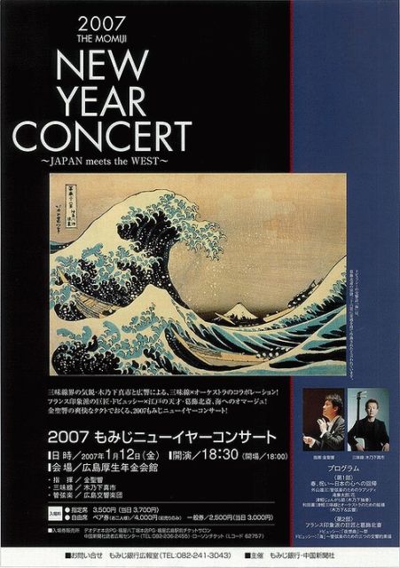 木乃下真市さんと広島交響楽団による、 三味線とオーケストラのコラボレーションという企画を見つけました。 指揮者を金聖響に、「津軽三味線とオーケストラのための絃魂」を 木乃下さんがオーケストラと演奏。 じょんがら節の独奏もあるようです♪ ■公演日:2007年01月12日 (金) ■場所: 広島厚生年金会館(広島市中区加古町3-3) ■開場 :18:00〜 ■開演 :18:30 ■チケット: ・指定席→ 3,500円(当日3,700円) ・自由席→ペア券(二人)/4,000円 →一般券/2,500円(当日3,000円) ■販売:デ