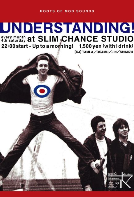 2007年度一発目の開催です☆ 新年会気分で盛り上げます! 今年もよろしくお願いします! 『understanding! vol.14』 in SLIM CHANCE STUDIO 1/27(sat) 22:00 start ¥1,500(with 1drink) 【DJ】 TAMLA SHIMIZU JIN OSAMU 【VJ】 compgraph 【SCOOTER RUN】 20:30start(袋町公園) ※未成年の入場禁止(入場の際IDチェックを行います) ※営業時間内のダンス行為は法律で禁じられております。ご理解いただいたうえでのご入場をお願い致します。 SLIM CHANCE STUDIO HP http://homepage2
