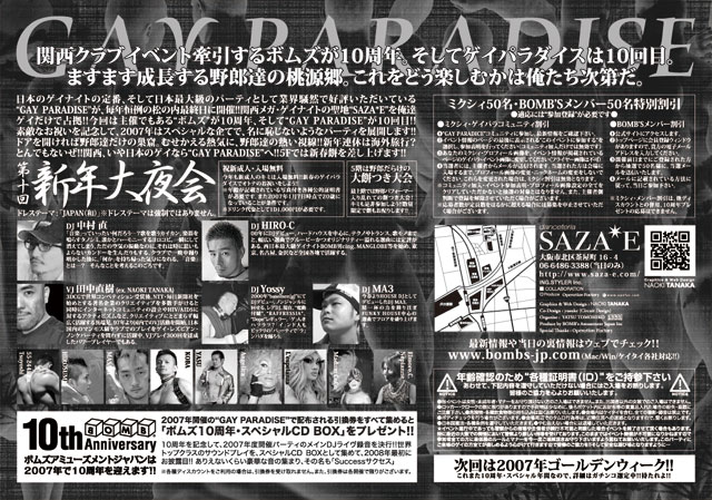 日本のゲイナイトの定番、そして日本最大級のパーティとして業界騒然で好評いただいている“GAY PARADISE”が