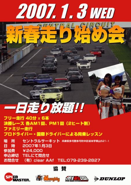 いよいよ受付の方を開始致しました♪ HPより申込書をダウンロード頂きFAXにて送付願います!! 尚定員になり次第締め切りとさせて頂きますのでお早めに。 http://clearaaf.web.fc2.com/ 【クラス分】 1:NAクラス 2:TURBO-タービン交換クラス 3:TURBO-ノーマルタービンクラス 4:V-TEC:1600CC以下クラス 5:V-TEC:1600CC以上クラス 6:REクラス 7:AE-86クラス 8:レデースクラス 【走行時間】 40分×6本 模擬レースAM(5周)・PM(7周) 計2本 【料金】 \24,000- 【模擬レースについて】 走行会では斬新なア