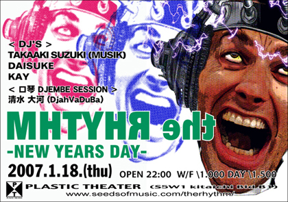¤µ¤¡¡ª¡ª»Ä¤¹¤È¤³¤í¤¢¤È¿ôÆü¡ª¡ª ¤Ö¤ÃÈô¤Ó¤Þ¤¹¤¼¤§¤§¤§¤¨¤¨¤¨¤¨¤¨¤¨¤¨¡ª¡ª¡ª¡ª¡ª ¡ü2007.1.18. (thu) ¡üOPEN 22:00 ¡üW/F \1.000 DAY \1.500 ¡÷Plastic Theater¡Ê»¥ËÚ»ÔÃæ±û¶èÆî5À¾1Ḛ̈ì¥Ó¥ëÃϲ¼1³¬¡Ë < DJ'S > ¡¦Takaaki Suzuki ¡¦DAISUKE ¡¦KAY < ¸ý¶×¡¦Djembe Session > À¶¿å¡¡Âç²Ï (DjahVaDuBa) ¡ÚThe Rhythm¡ÛHP http://www.seedsofmusic.com/therhythm/