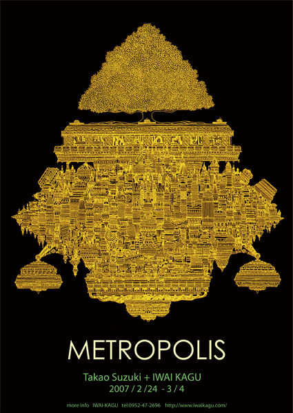 イベントの告知をお願いします。 不適切な場合は削除してください。 大川にある【いわい家具】にて個展を開催中です。 今回は、鈴木高男が作る「METROPOLIS」(都市計画)と いうタイトルの極細素描画を一部いわい家具が作 る箱 額と家具を使い展示いたします。 最先端のようで、懐かしさが残る不思議な都市の図。 その中には「科学進化と人の心、文化の進化は同時 に進まなければならない」という作者のメッセージ が込められています。 いわい家具2Fの会場は木のぬくもりあふれるとて も素敵でちょっと不思議な空間です