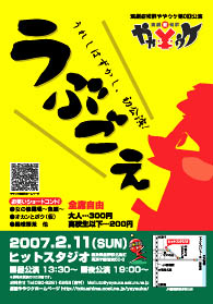 こんにちは&はじめまして! 徳島で活動している劇団「ややウケ」の うと と申します。 今回、2/11(日)に旗揚げ公演が決定したので告知させて下さい! ●演劇症候群ややウケ 第0回公演 『うぶごえ』〜うれしはずかし初公演〜 【日時】2007年2月11日(日) ■昼公演…開場13:00〜 開演13:30〜 ■夜公演…開場18:30〜 開演19:00〜 【場所】ヒットスタジオ (徳島県板野郡北島町高房字勝瑞境50-6) ※JR勝端駅から徒歩、3分程度。 ママの店 勝瑞店さんの、道をはさんで向かいにあります。 北