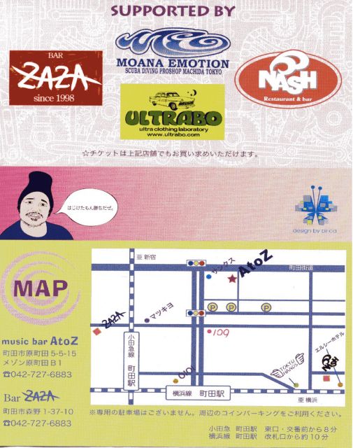 日頃お世話になっているBAR ZAZAさんの定期イベントに協賛というかたちで参加させてもらえることになりました。 場所 A to Z (元プレイハウス) 日付 2007/2/3(sat) 時間 21:30〜 イベント内容はDJ & バンド & ダンスとなっております。 ULTRABOもゲームなど企画思案しております。 そしてプレゼントも用意しております。 前売りチケットを店頭にて販売してます。 ULTRABO店頭にて前売りチケット購入してくださった方にはラボ限定で粗品プレゼント差し上げてます。 イベントの詳しい内容等詳しくはスタッフにお尋