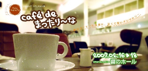 劇団福井自由舞台 『cafe de まったり〜な』 【日時/演目】 ・16日(金)20:00〜 失くしたものはなんですか?/2月16日の約束/表情/祭りの記憶 ・17日(土)20:00〜 うそ/遊星からの使者/イノチノトウトサ/悩める作家の不思議な1日 ・18日(日) 14:00〜 悩める猿と花嫁/大人2子供2(オトナの事情・コドモの事情)/愛情のかたち/4ちゃんねる 17:00〜 幸せのカプチーノ/まぼろしかふぇ/失くしたものはなんですか?/悩める猿と花嫁 20:00〜 2月18日の約束/祭りの記憶