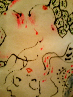 今回、『ぐるぐる11人展』というグループ展に参加。 『春』というテーマを与えられ、洋服に描きました。 本日から3/3まで開催。 大阪ですが、ご紹介させて頂きます。 私の『春』は、な、なんと! 『春を売る』 じゃんじゃじゃ〜ん!! 目もグルグル。頭もグルグル。 そんなもんでしょ。 イク時って。 【部分的にアップしてみました】 開催日時:2/18〜3/3 展覧会場所:『箱庭 アフ』 大阪市中央区鎗屋町1-1-10 地下鉄中央線谷町四丁目駅3番出口から徒歩1分 お店の公式HP http://www2.odn.ne.jp/af/nomi