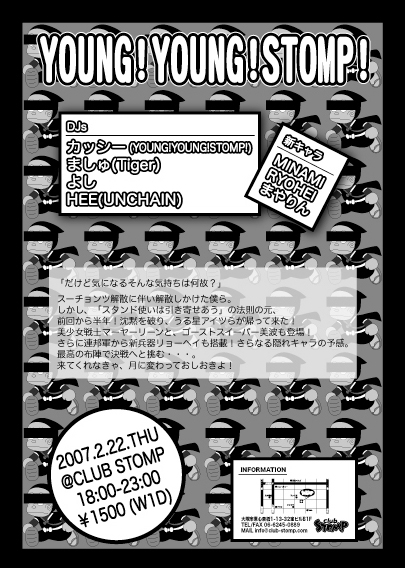 2007-02-22 @ Sam & Dave Umeda Umeda Reggae Attack イベントページ http://www.iflyer.jp/flyer.html?city=OSAKA&ID=4051&ad=mce1 Sam & Dave Umeda ホームページ http://sam4.iflyer.jp/?ad=mce2 ☆☆ Umeda Reggae Attack ☆☆ Reggae Party!! Reggae Party!! 【MUSIC】 All styles of Reggae and Dancehall with reggae dance performances all nite long 【DETAILS】 time: 10pm - 5am cost: 1500 w/1 drink Dj Snob / Stereo Crava / Cool Eyes / Chelsea / Cloud / Aquanation / Madadan Sound / Dark Horse and more Dj Snob / Stereo Cr