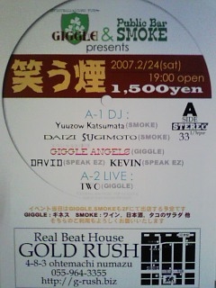 ちなみに、giggle「くすくす笑う」とsmoke「煙」で、「笑う煙」です。よろしくっ!